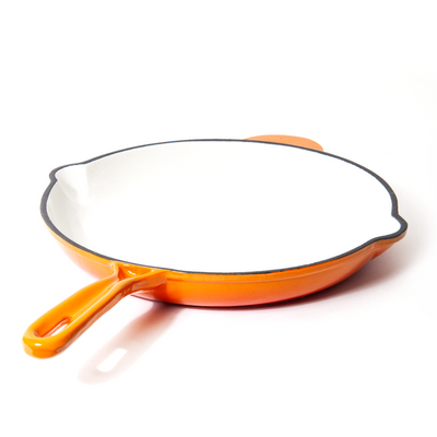 Orange Enameled Cast Iron Skillet Fry Pan by Nardelli Cookware